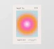Trovate conforto e rassicurazione con questo poster "Angelo n. 333", che rappresenta il sostegno. L'elemento centrale è un gradiente di aura vibrante e accattivante, che passa da un azzurro rilassante a un arancione caldo e a un rosa brillante, con un nucleo bianco brillante. Al di sotto di questa immagine ipnotica, la scritta "SUPPORT" è ben visibile, accompagnata dal messaggio edificante: "I vostri angeli sono qui per guidarvi. Nonostante le tue paure e le tue ansie, sei sulla strada giusta". Questo pezzo fonde magnificamente l'arte astratta moderna con un profondo significato spirituale, offrendo bellezza e conforto. Si tratta di un oggetto di qualità superiore