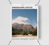 Intraprendete un viaggio visivo attraverso uno dei percorsi di trekking più iconici del mondo con questa stampa fotografica minimalista del Circuito dell'Annapurna, in Nepal. Disegnata in stile textblock, abbina toni naturali morbidi a narrazioni culturali, guidandovi attraverso vasti paesaggi himalayani, villaggi remoti e spirito d'avventura. Ideale per gli amanti dei viaggi, delle montagne e del design sobrio.