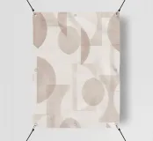 Il disegno presenta un'accattivante disposizione di cerchi, rettangoli e forme astratte di foglie sovrapposte, che alludono sottilmente a forme organiche all'interno della struttura. La texture granulosa aggiunge profondità e interesse visivo.