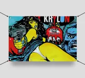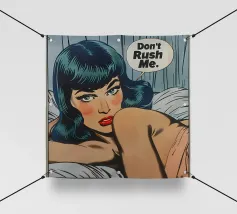 Le opere di Josh Ruggs guardano in modo satirico al sogno americano e a tutti i discorsi sociali, politici e culturali che vi ruotano attorno. Utilizza oggetti familiari di uso quotidiano, celebrità ed estetica comica, chiaramente nella tradizione della Pop Art, come strumenti per visualizzare queste narrazioni della cultura di massa, del consumo e del culto della personalità. Per creare le sue immagini multistrato, l'americano lavora con spray, pittura acrilica, olio, inchiostro e praticamente con ogni superficie che gli capiti sotto mano.