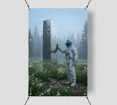 Entrate in un momento di forte contrasto ed emozione. Astronauta di luce che tiene in mano una farfalla in un futuro oscuro presenta un esploratore spaziale solitario in un corridoio ombroso, il cui casco luminoso irradia calore mentre una delicata farfalla riposa delicatamente nella sua mano. L'immagine fonde la fantascienza futuristica con il simbolismo poetico, rappresentando la speranza, la fragilità e l'umanità in un freddo mondo tecnologico. L'illuminazione drammatica, le ombre profonde e la composizione minimalista creano un'atmosfera cinematografica e surreale.