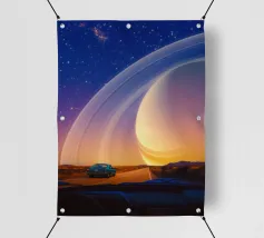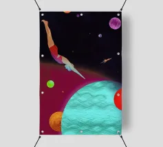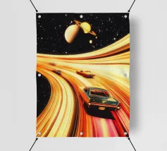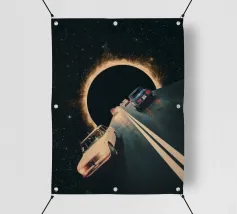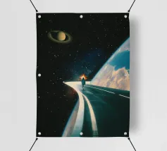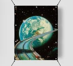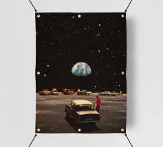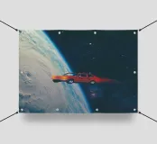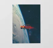 Un'immagine surreale di una piccola auto rossa alla deriva nello spazio profondo sopra la Terra. Simbolo del bisogno di fuggire, di andare ovunque, purché siate voi a guidare. Una metafora visiva per liberarsi, cercare una direzione o semplicemente riprendere il controllo in un mondo che non ascolta più.