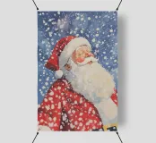 Incantevole illustrazione di Babbo Natale con il suo tradizionale vestito e cappello rosso, circondato da fiocchi di neve che cadono dolcemente, catturando lo spirito festivo della stagione delle feste.