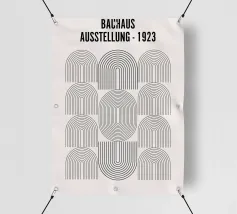 Questo poster d'arte astratta, che si rifà all'epoca del Bauhaus (1919-1933), presenta un avvincente disegno geometrico. Quattro grandi forme sono composte da triangoli intricati e allineati, utilizzando motivi verticali e orizzontali in nero su uno sfondo chiaro. Il gioco di linee crea una struttura visiva e una forma che incarna i principi grafici del Bauhaus. Prodotto come arte digitale di alta qualità a 7000x5000 pixel e 300 dpi, questo poster garantisce dettagli nitidi e linee nette per un'opera d'arte di qualità.