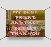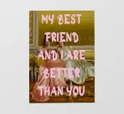 Celebrate il vostro legame indissolubile con "My Best Friend and I Are Better Than You", una spiritosa stampa pop art che unisce l'eleganza classica a una moderna e giocosa dichiarazione di amicizia. Questa accattivante opera d'arte raffigura due serene figure storiche, elegantemente posate su un lussuoso divano, apparentemente impegnate in un libro. Il testo in grassetto, di colore rosa caldo, "IL MIO MIGLIOR AMICO ED IO SONO MEGLIO DI TE" si sovrappone all'immagine, trasformando la scena senza tempo in un'ironica e sicura dichiarazione di esclusività. Perfetto per aggiungere personalità e un tocco di fascino spensierato a qualsiasi spazio contemporaneo. Realizzato ad un