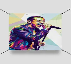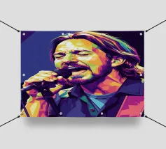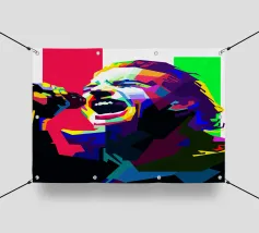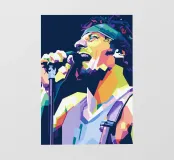 Bruce Springsteen in stile WPAP è un ritratto vibrante e geometrico del Boss, caratterizzato da forme audaci e spigolose e da sorprendenti contrasti di colore. Questa moderna tecnica pop-art cattura la sua intensa energia e la sua presenza leggendaria, riflettendo la sua profonda influenza sulla musica rock. Lo stile WPAP esalta la sua immagine iconica, enfatizzando le sue performance appassionate e la sua abilità di narratore attraverso tonalità dinamiche e ad alto contrasto.