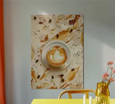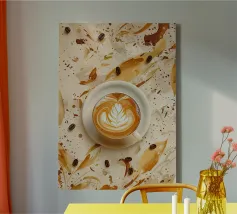 caffè latte art tazza da caffè piattino chicchi di caffè schiuma bevanda bevanda cappuccino espresso caffetteria caffè mattina colazione marrone bianco cremoso bevanda calda tazza in ceramica decorazione astratta