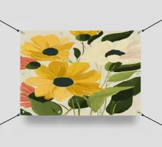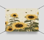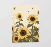 Questa illustrazione luminosa e allegra mostra un vivace campo di girasoli visitato da api ronzanti. I grandi fiori sono in piena fioritura e simboleggiano l'estate, la gioia di vivere e la crescita. Le api in volo sottolineano la naturalezza e il movimento della scena. Ideale per chi ama i motivi floreali o cerca un legame con la natura. Perfetto per cucine, soggiorni, spazi di lavoro o come regalo per gli amanti dei fiori. Quest'opera può avere anche un fascino particolare per chi è attento all'ambiente o per gli apicoltori.