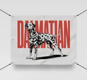 Un dalmata fiero ed elegante si staglia su un'accattivante tipografia rossa: questo design celebra uno dei cani più iconici, famoso per il suo manto maculato e per il suo aspetto audace. Perfetto per gli amanti dei cani, gli appassionati di grafica forte e di minimalismo audace. Un visual moderno e deciso, a immagine di questo compagno fedele e carismatico.