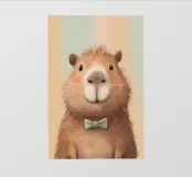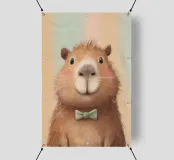 Un dolce capibara che tiene in mano un fiore rosa, vestito con un morbido blush.