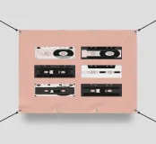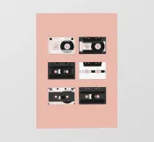 L'opera d'arte Cassette Pattern è visivamente dinamica. L'opera presenta un motivo ripetuto di cassette in tonalità corallo. L'uso di una tavolozza di colori corallo pastello crea un senso di armonia in tutta l'opera, dando una sensazione di nostalgia.