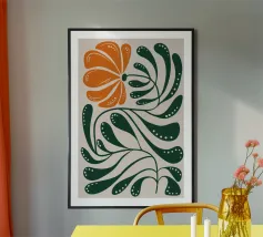Un'opera d'arte astratta in cui le vibranti forme floreali nei ricchi colori rosso, verde e beige si scontrano con un'energia cosmica. Perfetto per aggiungere un tocco audace e moderno alla vostra casa o al vostro guardaroba, questo disegno unico brilla su tele, poster, adesivi e abbigliamento. Elevate il vostro spazio con un pezzo che unisce la bellezza della natura all'ispirazione stellare.