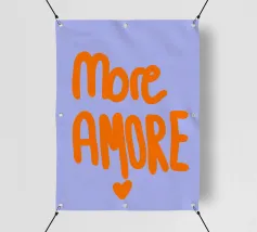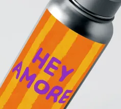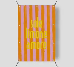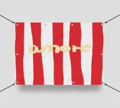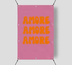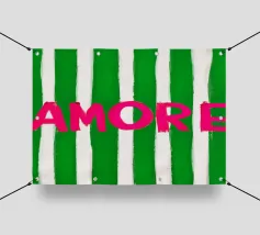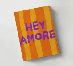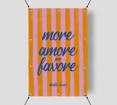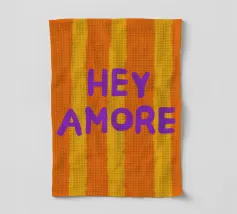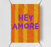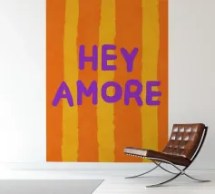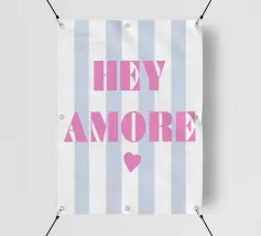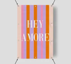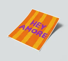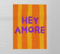 "Hey Amore" - una graziosa tipografia a righe dai colori vivaci che celebra la gioia della famiglia e dell'amore. Perfetta per i matrimoni e come poster romantico.