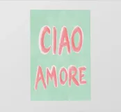 "Ciao Amore" - un messaggio d'amore dai colori vivaci e dalle scritte rosa in grassetto porta il fascino italiano nella vostra casa. Questa pittura acrilica verde chiaro e il design grafico moderno celebrano l'amore e sono perfetti per San Valentino o per la festa della mamma. Un'allegra stampa estiva che unisce cuore e stile!