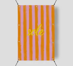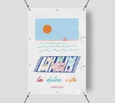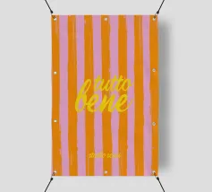 Un poster minimalista ma espressivo che trasmette la leggerezza mediterranea con una sola parola: "Ciao", il saluto italiano multiuso che può essere sia un saluto che un addio. Il design combina la scritta verticale "Ciao" in giallo brillante con uno sfondo vivace di pennellate irregolari in arancione e rosa. Questa scelta cromatica ricorda i bar estivi sulla spiaggia, le tende da sole italiane e la spensieratezza della vita al sud. La piccola aggiunta dello studio scusi è elegantemente integrata nella composizione e rende il poster un vero e proprio richiamo visivo.