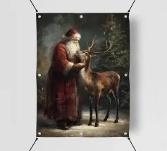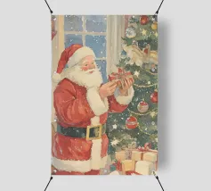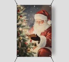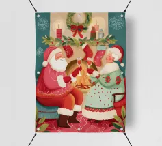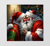 Babbi Natale che si baciano teneramente a lume di candela vicino a un albero di Natale.