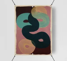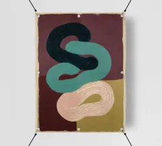 Tre forme dai colori vivaci in rosa, blu e verde si intrecciano elegantemente in un movimento apparentemente senza fine. Questo poster moderno combina energia e armonia in una sovrapposizione trasparente. La composizione ha un effetto dinamico ed equilibrato, ideale per gli spazi creativi, gli amanti del design e gli interni a colori ridotti con aspirazioni moderne.