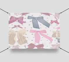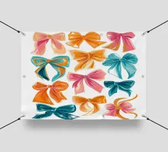 Un motivo giocoso di fiocchi colorati in rosso, rosa, verde acqua, verde lime e pesca, sparsi su un morbido sfondo color pesca con accenti di stelle bianche. Questo disegno allegro e festoso dona un fascino stravagante, perfetto per aggiungere un tocco femminile e gioioso al vostro spazio. Ideale per confezioni regalo, decorazioni ispirate alla moda o per chiunque ami un motivo audace ma delicato. Creato da showmemars