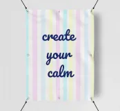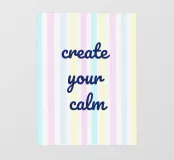 "Crea la tua calma" centrata su uno sfondo a strisce verticali in morbidi colori pastello. Semplice design clipart senza ombre, minimalista e chiaro - ideale per vibrazioni calme ed equilibrate con un look moderno.