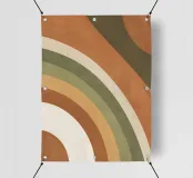 Un'opera d'arte astratta nostalgica con linee curve e fluide in arancione polveroso, giallo, verde salvia, marrone, beige e bianco. Ispirata al design degli anni '60 e '70, aggiunge un caldo tocco retrò a interni moderni, boho o eclettici.