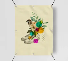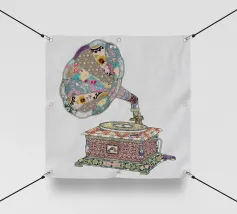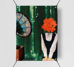 Una nostalgica stampa d'arte a collage che unisce fascino vintage e romanticismo. Un grammofono ornato esplode di fiori vivaci e dischi in vinile, mentre una coppia che balla cattura la magia della musica senza tempo. Un'opera d'arte da parete perfetta per gli amanti della musica, per gli appassionati di arredamento retrò o per chiunque sia attratto dalla narrazione di storie sentimentali attraverso il design.