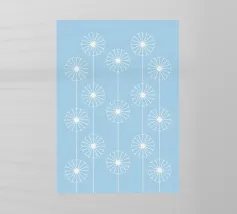 Questa opera d'arte digitale con motivo a dente di leone in blu è un pezzo di grande impatto visivo. L'opera presenta un motivo ripetuto di denti di leone reso in stile digitale. L'uso del blu crea un senso di armonia ed equilibrio in tutta l'opera.
