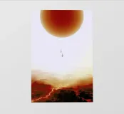 Questa illustrazione digitale cattura l'audace discesa di due coraggiosi paracadutisti su un paesaggio desertico rosso e alieno. Il terreno sottostante è una vasta e arida distesa di dune di sabbia cremisi.