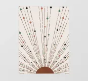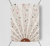 Questo design elegante combina linee radianti e punti sottili nei colori della terra come il marrone, il verde e il nero, che si diramano da una forma centrale. L'estetica minimalista conferisce al motivo un aspetto moderno e armonioso. Perfetto per murales, tazze, cuscini o cover per cellulari, questo disegno aggiunge un'atmosfera artistica e senza tempo a qualsiasi ambiente. Ideale per gli amanti dello stile boho e delle idee di interior design moderne e creative, è anche un'idea regalo stimolante.