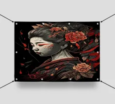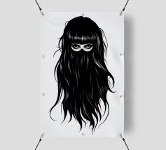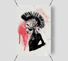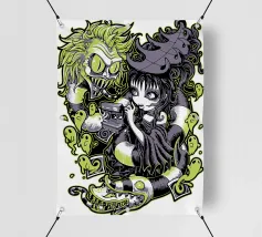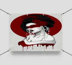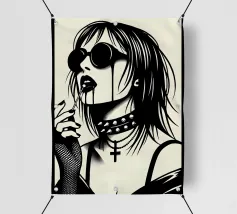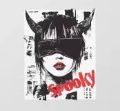 Una misteriosa demonessa con una benda e seducenti labbra rosse domina questa composizione oscuramente erotica. L'estetica grunge ricorda i manifesti punk degli anni '80, mentre la scritta "Spooky" in rosso sangue rafforza l'atmosfera di Halloween. I contrasti in bianco e nero con accenti rossi mirati creano una tensione drammatica. Questo provocatorio mix di gotico e street art trasforma la moda in dichiarazioni ribelli, perfette per chiunque ami il lato oscuro!