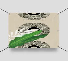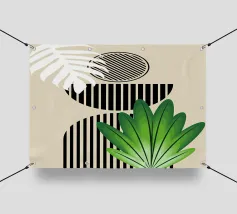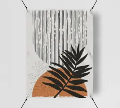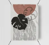 Un design artistico con foglie di monstera minimaliste in contrasto bianco e nero, abbinate a un caldo semicerchio in terracotta. L'armoniosa fusione di forme naturali e linee moderne fa di questo motivo il pezzo forte di ogni casa. La palette di colori ridotta e gli elementi grafici creano un look contemporaneo ed elegante. Perfetto per opere d'arte da parete, cuscini, tazze o cover per cellulari. Questo disegno conferisce un tocco boho chic e botanico al vostro spazio abitativo o lavorativo ed è ideale anche come regalo per gli amanti della natura e del design.