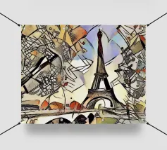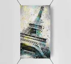 La Torre Eiffel è un noto punto di riferimento di Parigi e simboleggia l'intera Francia in tutto il mondo. La realizzazione grafica mostra la torre composta solo da parole. Motivo moderno e decorativo con figure geometriche che enfatizzano l'effetto della Torre Eiffel e la mettono in primo piano.