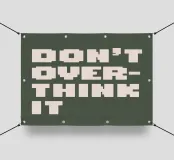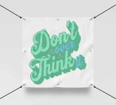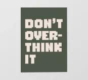 Un design minimalista con un gomitolo aggrovigliato di fili colorati che si dipana lentamente in una linea retta. La frase "Don't Overthink It" (Non pensarci troppo) è riportata in una tipografia pulita e moderna, che sfuma delicatamente dal grassetto alla luce per riflettere la calma chiarezza. Lo sfondo sereno in tenui toni pastello esalta il messaggio di semplicità e abbandono.