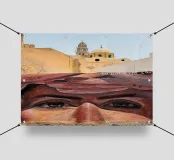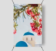 Tra le mura storiche di Santorini, in Grecia, uno sguardo intenso attira l'attenzione: un murale artistico di una donna i cui occhi sembrano guardare dritto nell'anima. Sullo sfondo si ergono la cupola e il campanile di una tipica chiesa greco-ortodossa. L'interazione tra street art e architettura storica racconta i contrasti, l'identità e l'espressività di questa affascinante isola.