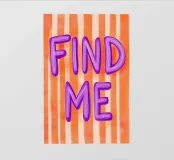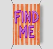 Nei toni vivaci dell'arancione e del viola, questa stampa d'arte "Find me" esprime a grandi lettere e a strisce il desiderio di amore e di scoperta di sé. La tipografia romantica incornicia la ricerca di un partner e lo stare insieme. Ideale per l'estate, il disegno cattura in modo giocoso l'essenza delle relazioni.