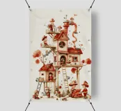 Questa deliziosa illustrazione cattura una vivace casetta dei pompieri sull'albero, piena di lavoro di squadra, azione e gioco. Dallo scivolo per la manichetta, al salvataggio dei gatti e alla guida di mini autopompe, ogni dettaglio invita i bambini a entrare in un mondo di immaginazione e gentilezza. Perfetta per la narrazione e la decorazione delle pareti, questa opera d'arte stimola la curiosità e il coraggio dei piccoli cuori.