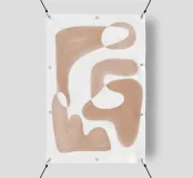 Fluido disegno astratto caratterizzato da diverse forme irregolari e curve di colore marrone, collegate tra loro da spazi bianchi, che creano un senso di movimento e continuità organica su uno sfondo neutro.