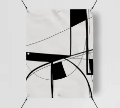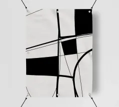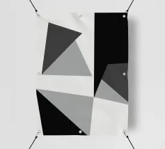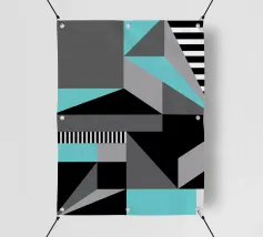Forme geometriche in varie tonalità di grigio, bianco e nero creano una moderna composizione astratta. Gli angoli acuti e i toni contrastanti esaltano la dinamicità del disegno.
