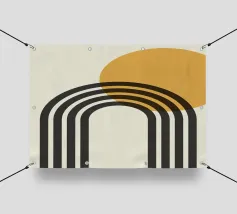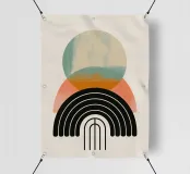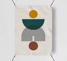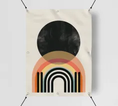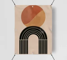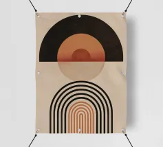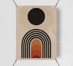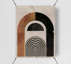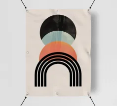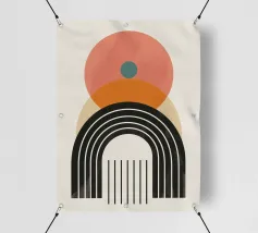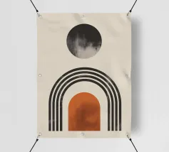 Questo disegno astratto combina colori pastello tenui in blu, arancione e beige con archi chiari e neri. Lo stile moderno e minimalista conferisce a qualsiasi ambiente un'atmosfera calma e armoniosa. Che si tratti di un murale, di un cuscino, di un poster o di tazze, questo motivo si adatta perfettamente ai concetti di vita contemporanea. Si rivolge agli amanti del design che apprezzano le forme chiare e i colori tranquillizzanti. Ideale per soggiorni, camere da letto e uffici moderni.