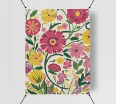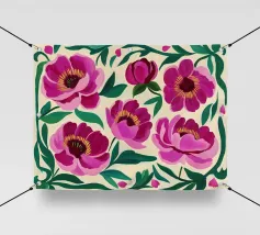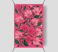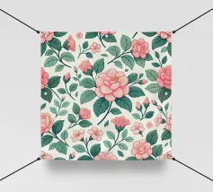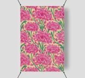 Un motivo ripetuto di garofani rosa brillante con petali stratificati offre un senso di nostalgia e fascino decorativo.