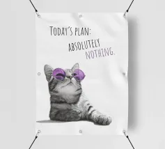 Questa gatta sa quello che vale e dare la caccia ai topi non è certo nei suoi programmi! Con la sua posa disinvolta e gli occhiali da sole viola, è il simbolo perfetto di serenità, stile e una buona dose di fiducia in se stessa. Il design moderno e minimalista combina una precisa illustrazione in bianco e nero con un chiaro accento di colore viola. Questa combinazione appare sofisticata, attenta alle tendenze e giocosa allo stesso tempo; perfetta per chi unisce l'umorismo allo stile. Un must per i fan dei gatti, gli amanti del design e tutti coloro che sanno cosa vogliono: La vera coolness non ha bisogno di sforzi.