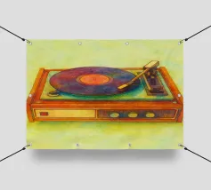 Un tributo visivo alla cultura musicale vintage con questo giradischi in stile pop-art. Colori vivaci, linee grafiche e un'estetica retrò conferiscono a questo design un'energia nostalgica ma moderna. Perfetto per gli amanti della musica, dei dischi in vinile e dell'atmosfera old-school. Questa immagine cattura l'essenza del suono analogico e dello stile retrò in un universo pop e grafico di tendenza.