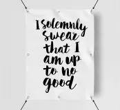 Date un tocco di malizia al vostro spazio con questa stampa tipografica giocosa. L'iconica frase "I Solemnly Swear That I Am Up to No Good" (Giuro solennemente che non ho intenzione di fare nulla di buono) è splendidamente resa in caratteri neri disegnati a mano, su uno sfondo bianco pulito. Questo pezzo accattivante cattura lo spirito di avventura e di innocua ribellione. Perfetta per gli appassionati di racconti magici o per chiunque abbia un debole per i guai, quest'opera d'arte susciterà sicuramente gioia e conversazione. Lasciate che questa affascinante stampa vi ricordi di abbracciare il trickster che è in voi e di aggiungere un pizzico di divertimento alla vostra giornata.