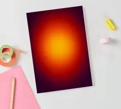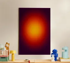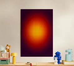 Questo poster porta energia alla parete: un intenso gradiente di colore di arancione dorato, rosso incandescente e viola profondo crea una sensazione di calore, profondità ed eccitazione. Ideale per ambienti di carattere o come forte contrasto in interni tranquilli. Fa parte della collezione "Glow Forms", che crea un'atmosfera visiva attraverso il colore e la luce. Potente. Luminoso. Espressivo.