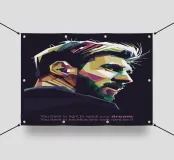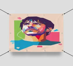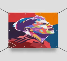 Lionel Messi in stile WPAP è un ritratto sorprendente e colorato del leggendario calciatore, creato utilizzando forme geometriche nitide e toni vivaci. Questo pezzo pop art cattura i tratti iconici e il carisma pacato di Messi, celebrando la sua grandezza attraverso l'audace linguaggio visivo di WPAP (Wedha's Pop Art Portrait).