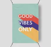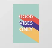 Una dichiarazione tipografica in tre potenti parole: GOOD - VIBES - ONLY. Ogni parola in un colore diverso, ogni linea con un'ombra lunga: visivamente forte, emotivamente chiaro. Lo sfondo verde pastello conferisce leggerezza, mentre il rosso, il blu e il giallo simboleggiano energia, calma e ottimismo.