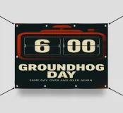 Stampa del Giorno della Marmotta, Poster cinematografico alternativo, Bianco e nero, Stampe di qualità minimalista, Orologio radio digitale, Marmotta, Regalo per gli amanti del cinema