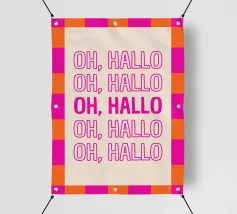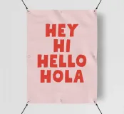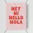 Un'opera tipografica moderna e giocosa con saluti in diverse lingue: HEJ, HEY, HI, HELLO e HOLA.