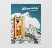 Donna vintage in procinto di entrare in una sauna per tutta la durata dell'inverno, perché il letargo è ottimo anche per gli esseri umani. Sfondo di montagne innevate e calendario invernale. Arte collage retrò e divertente di MsGonzalez