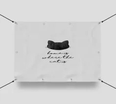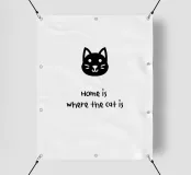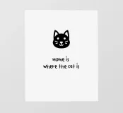 Slogan a caratteri neri: La casa è dove c'è il gatto; emoji di gatto sotto