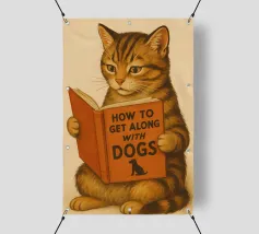 Una persona che legge un libro dal titolo "Come essere un gatto", un'arte per tutti gli amanti dei gatti.